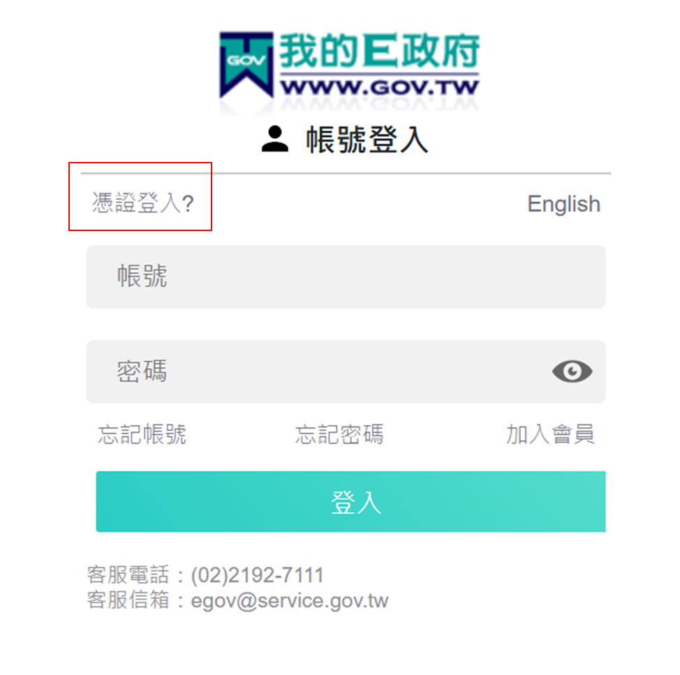 2. 點選右方【憑證登入,連結我的E政府】