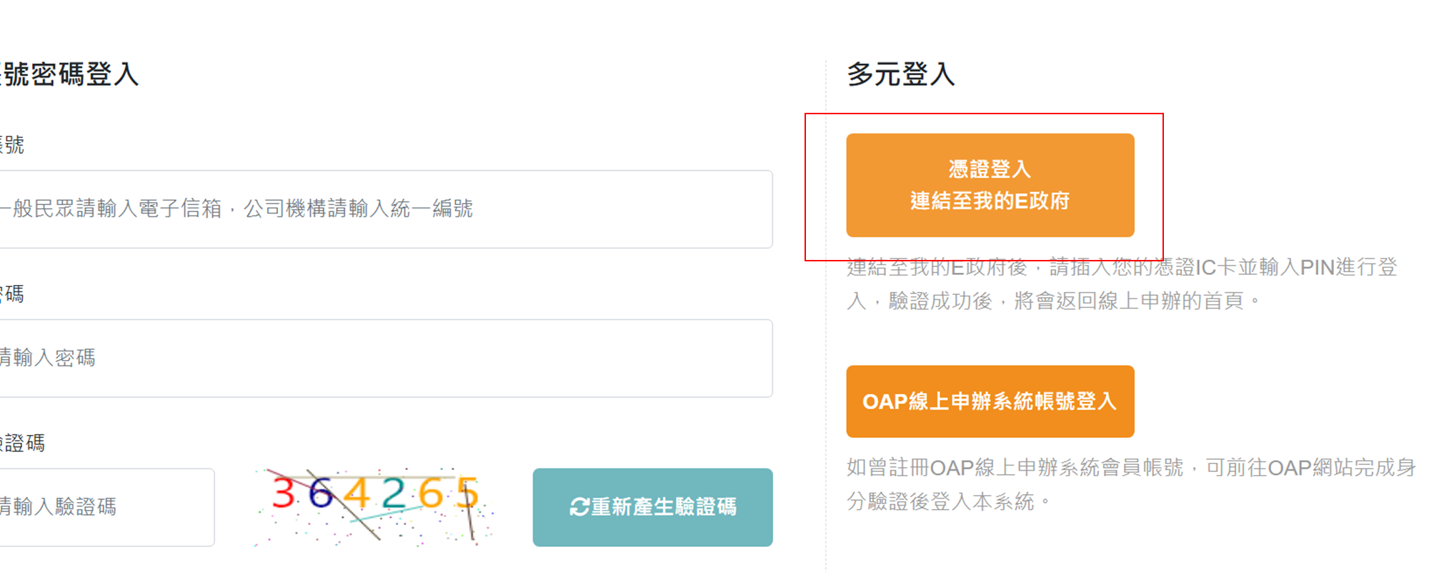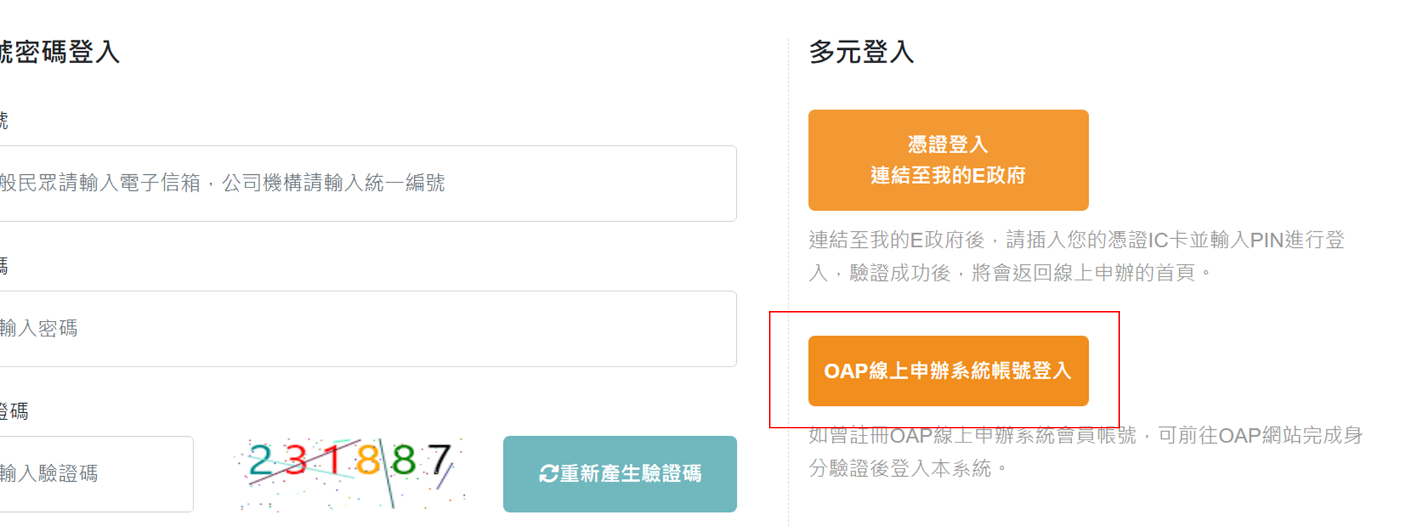 二. OAP線上申辦平台帳戶登入
